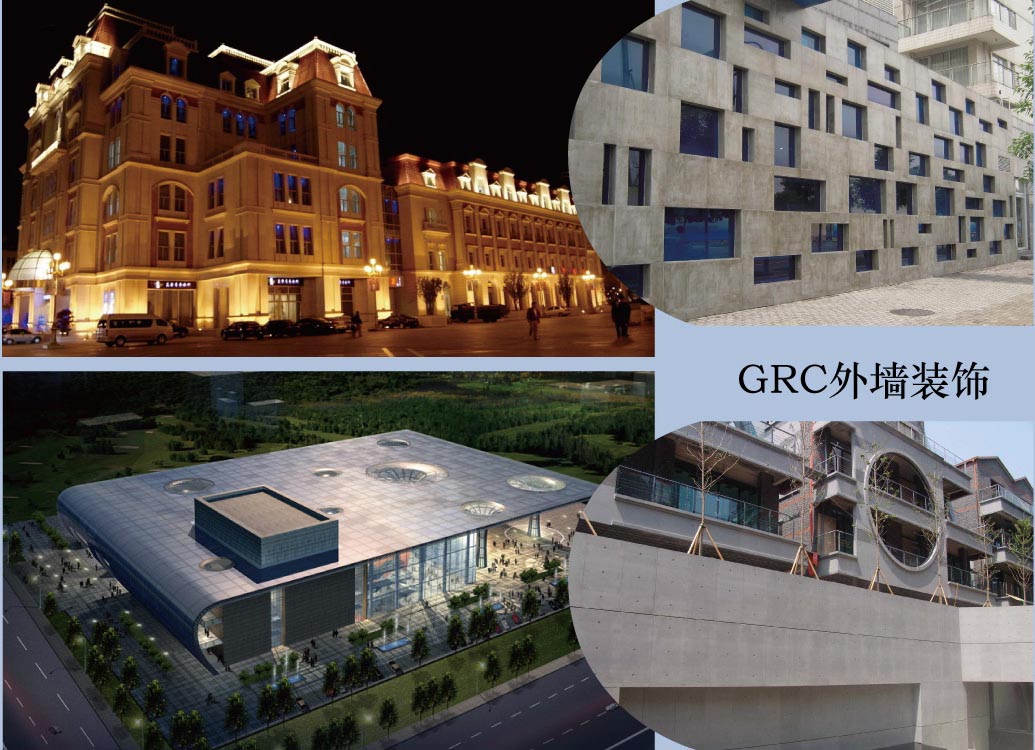 G. R. C.材料的优势和特点 GLASS FiBER REiNFORED CONCRETE ◆GRC (GLASS FIBER REINFORED CONCRETE)也称为GFRC,其中文名为玻璃纤维增强混凝土,是用水泥砂浆作为基材,抗碱玻璃纤维作为增强材料的复合材料,同时,还包括各种用于增强性能的助剂,以及颜料等。 ◆GRC的制造过程中的工艺是十分独特的,将配制好的玻璃纤维混凝土喷射在模板质感细腻,能够保证产品达到优良的密实性、强度和抗裂性能。这样制作出来的产品在品质上与普通的混凝土涂抹工艺有着天壤之别。在欧美,单层GRC薄板应用广泛的外墙装饰板。 .其次,增强的玻璃纤维有很多种型式,例如短切纤维纱、连续纤维无捻粗纱、网格布、短切纤维毡等,不同型式的玻璃纤维掺入到水泥基体中的方法不同,相同型式的玻璃纤维掺入到水泥基体中的方法也不完全相同。而且玻璃纤维的掺入量和使用方式对于玻璃纤维增强水泥复合材料的力学性能有着很大的影响。 ◆GRC材料的成型几乎不受形状限制,采用GRC装饰构件可极大的丰富建筑设计师的想像力,创造出恢宏壮观、古朴典雅、自然秀美和清新幽雅等各具特色的建筑和环境。其超强的可塑性为建筑设计创新提供了更多的机会,在现代建筑设计中,越来越多地被设计师所采用,典型应用于大型双曲线建筑和非线性建筑设计中。 ◆GRC产品可以用作传统的雕塑、浮雕、墙饰、窗饰、拱肩、柱饰、封檐板、挑檐、遮阳板、折线形屋顶及内部装饰等,表现古典风格建筑的特点,又可应用于现代风格的建筑之中,为装饰墙板(幕墙板)等。 ◆GRC幕墙板是一种以波特兰水泥为胶凝材料,以耐碱玻璃纤维丝作为增强材料,通过机械喷射或自动化流水线辊压而成的一种玻璃纤维增强水泥板。该板具有高强、轻质、环保、防火、防水、耐候性强、艺术质感好、安装简便等优点,主要应用于各类建筑的内、外墙装饰,其表面通过喷砂、酸洗、喷涂、氟碳漆、仿石漆等各种装饰工艺,可制成立体浮雕、砂岩、酸洗、仿大理石、仿花岗岩、甚至仿木纹板等各种效果,并可以直接做出平面、曲面等各种艺术立体造型的风格,适应于各种不同的装饰风格,尤其在节能、安全性能与装饰效果方面远远优于其它类装饰墙材,目前已逐渐成为全球广泛采用的幕墙首选材料,堪称建筑材料中最具个性化的产品之一。 |